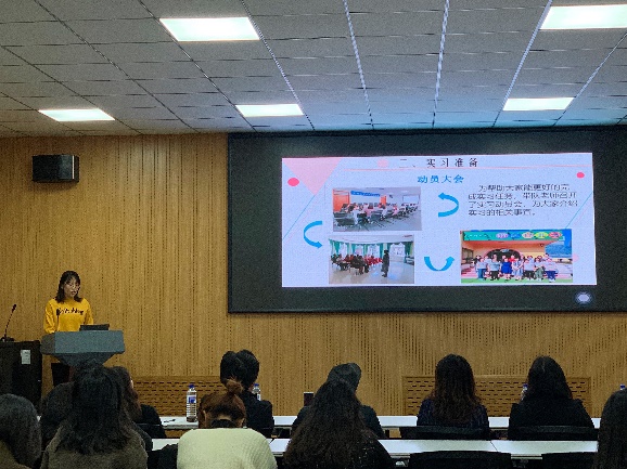 来自学前教育专业和小学教育专业的19名实习生代表详细汇报了实习经历与收获,分享了实习心得体会。其中,学前教育专业的4名实习生代表分别从“实习准备、实习过程、实习结果及实习感悟”四方面汇报了他们在304永利集团附属幼儿园等三所幼儿园的实习情况。小学教育专业的15名实习生代表围绕“教育、教学、教师”三中心,从“班级管理、奖惩、课堂教学、作业批改、成志教师、用‘心’教师、优秀教师的特质”六方面对他们在304永利集团附属小学等八所小学的实习成果展开了汇报。