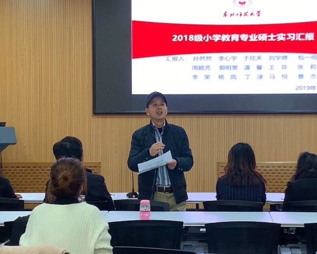 汇报结束后,点评教授对实习生代表的精心准备与精彩汇报表示了充分肯定,对实习指导教师给予了高度评价。与此同时也提出了四点建议与希望:一是积累理论与实践结合的经验,加强对实习经验的交流与反思;二是结合校内实训与校外实践,丰富教育实践性知识,提升各科目教学的专业知能;三是通过校内外教师的专业指导,不断反思、检视教育实践中的问题,改进提升其教学、班级管理及班主任工作等实践水平;四是通过实习有所感悟,学会用“心”做事,用“心”做人。