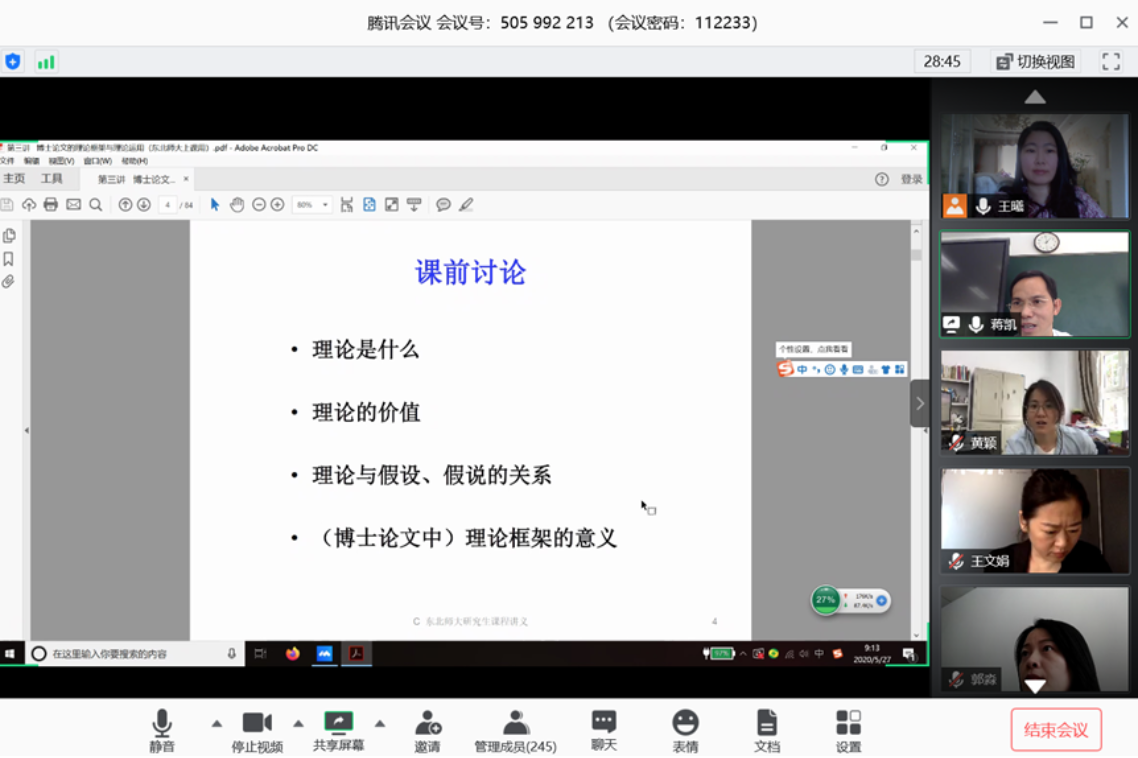 2020年5月25-31日,北京大学教育学院蒋凯教授应邀做客学部教育研究方法系列“元晖论坛”,通过线上教学平台(腾讯会议)为学部博士研究生作了题为“博士论文写作”系列专题学术报告。论坛由学部部长吕立杰教授、副部长唐丽芳教授主持,200余名博士生及部分青年教师参加了此次论坛活动。