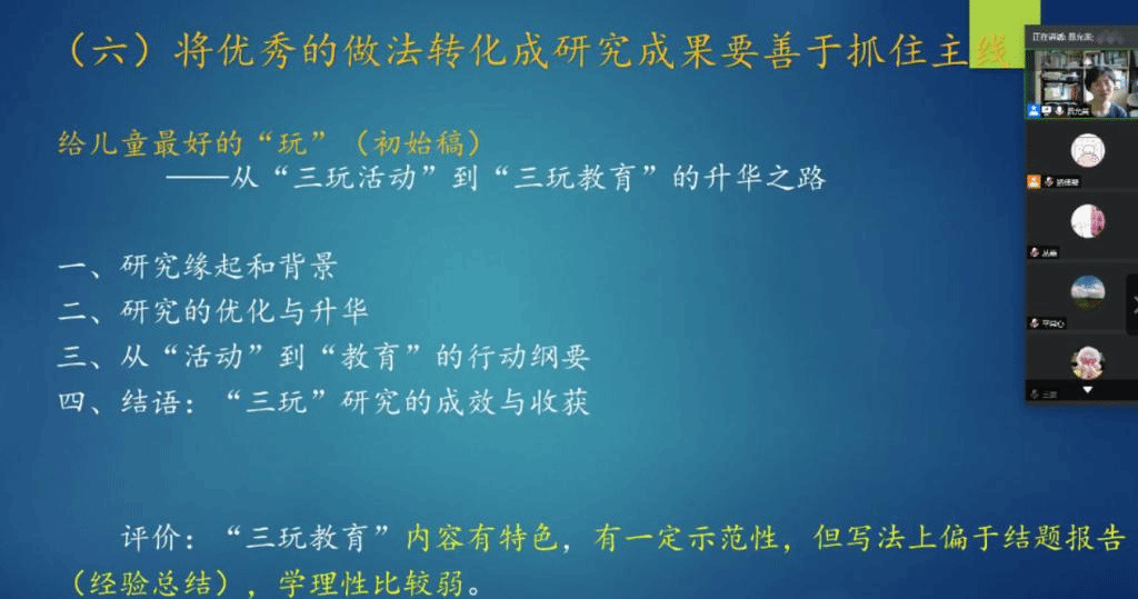 报告中,吕允英编辑首先从学前教育知识生产的现实境遇出发,阐释了学术表达的途径。并结合几本高级别期刊,分析了不同刊物学前教育文章的选题倾向,从选题方向上给予同学们指导。接着,吕允英编辑从热点文章看交叉学科的写作定位等七个角度针对性提出了学前教育文章的写作建议。最后,对相关论文进行现场点评与指导。