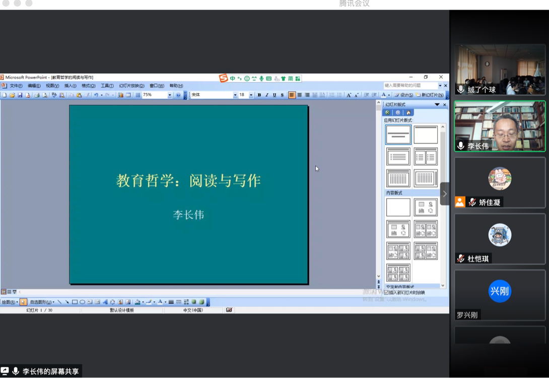 2020年9月2日,山东师范大学李长伟教授作客学部学前教育研究系列“元晖论坛”,为学部师生在线作了题为“教育哲学论文的修炼路径:从阅读到写作”的专题学术报告。报告会由学前教育学院严仲连教授主持。