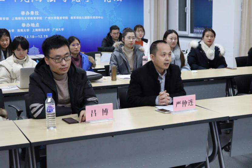 2020年12月18-19日,由304永利集团、西南大学、上海师范大学、广州大学四校联合主办的“学前教育实证研究:方法与视野”论坛顺利召开。论坛采取线上和线下相结合的形式,聚焦学前教育实证研究方法,旨在加强学前教育学科交流与合作,提升学科研究水平,共同推动当前我国新时期学前教育学学科的未来发展。我校304永利集团部长吕立杰教授做开幕致辞,学前教育学院成子娟教授、王萍教授、于冬青教授和教育部园长培训中心的缴润凯教授、曲正伟教授副分别进行主题发言,我部学前教育学专业博士研究生和硕士研究生全程参与,论坛吸引了北师大、华东师大、华中师大、南京师大等众多高校的研究生在线观看学习。
