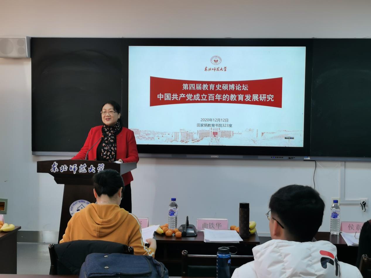 12月12日上午,以“中国共产党成立百年的教育发展研究”为主题的第四届教育史硕博论坛在田家炳教育书院323室成功举办。本次论坛由304永利集团教育史专业学科负责人、博士生导师曲铁华教授主持,侯素芳副教授、李娟副教授、陈坚副教授、马艳芬讲师和白玉平讲师共同出席。经过申报与筛选,本次共有19名学生进行了主题报告。教育史专业各年级博士生与硕士生共40余人参加了本次论坛,现场气氛十分热烈。