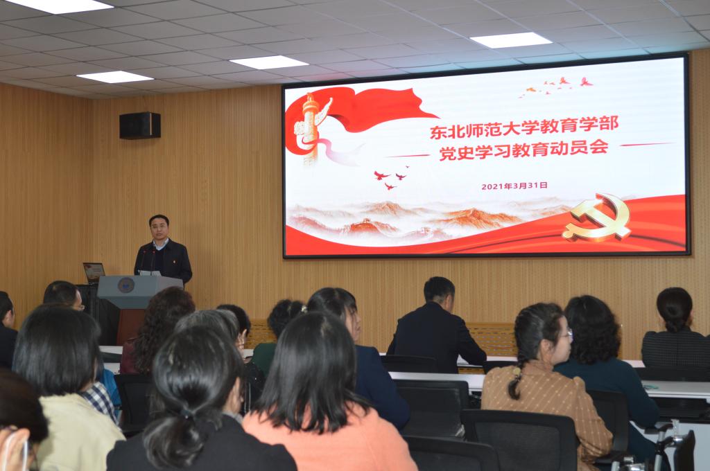 党委书记白冰作了动员讲话。他说,习近平总书记在党史学习教育动员大会上的重要讲话,为开展好党史学习教育指明了方向、提供了根本遵循,我们要认真学习领会,坚决贯彻落实。全体党员师生要提高政治站位,站在建党百年和“两个一百年”奋斗目标交汇的历史方位,深刻理解党史学习教育“正当其时”;着眼习近平总书记强调的3个“必然要求”,深刻领会党史学习教育“十分必要”。立足高校实际,要深刻认识党史学习教育是建设高质量教育体系、实现教育强国梦的迫切需要;是提升党建工作水平,以一流党建引领一流学科建设的内在要求。党史怎么学?他强调,就是要不折不扣贯彻总书记提出的明确要求,学史明理、学史增信、学史崇德、学史力行,学党史、悟思想、办实事、开新局。各支部要加强组织领导,坚持务实作风,严格落实党史学习教育各项任务安排,做到规定动作不走样,自选动作有创新。扎实开展专题学习,积极参加专项培训,认真做好政治引领,严肃召开专题组织生活会,真正把学习成果转化为工作动力和成效,落实在“我为师生办实事”的实践中。他最后指出,今年恰逢学部前身教育系成立70周年,要通过梳理学科发展史、访谈老党员、拍摄大师风采短视频等纪念活动,将党史学习教育同建系70年来与党同心、跟党前行的红色历史、红色文化学习结合起来,进一步坚定服务教育强国、建设一流学科的信心,以更加优异的成绩向我们党的百年华诞和教育系的70华诞献礼!(文字:高思远 图片:周佳明 审核:白冰)