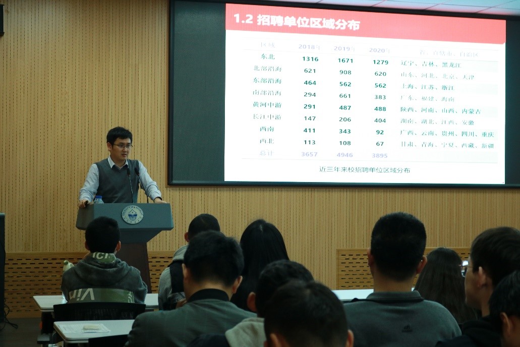毕海洋老师为学生讲解“教育行业就业市场分析”主题讲座