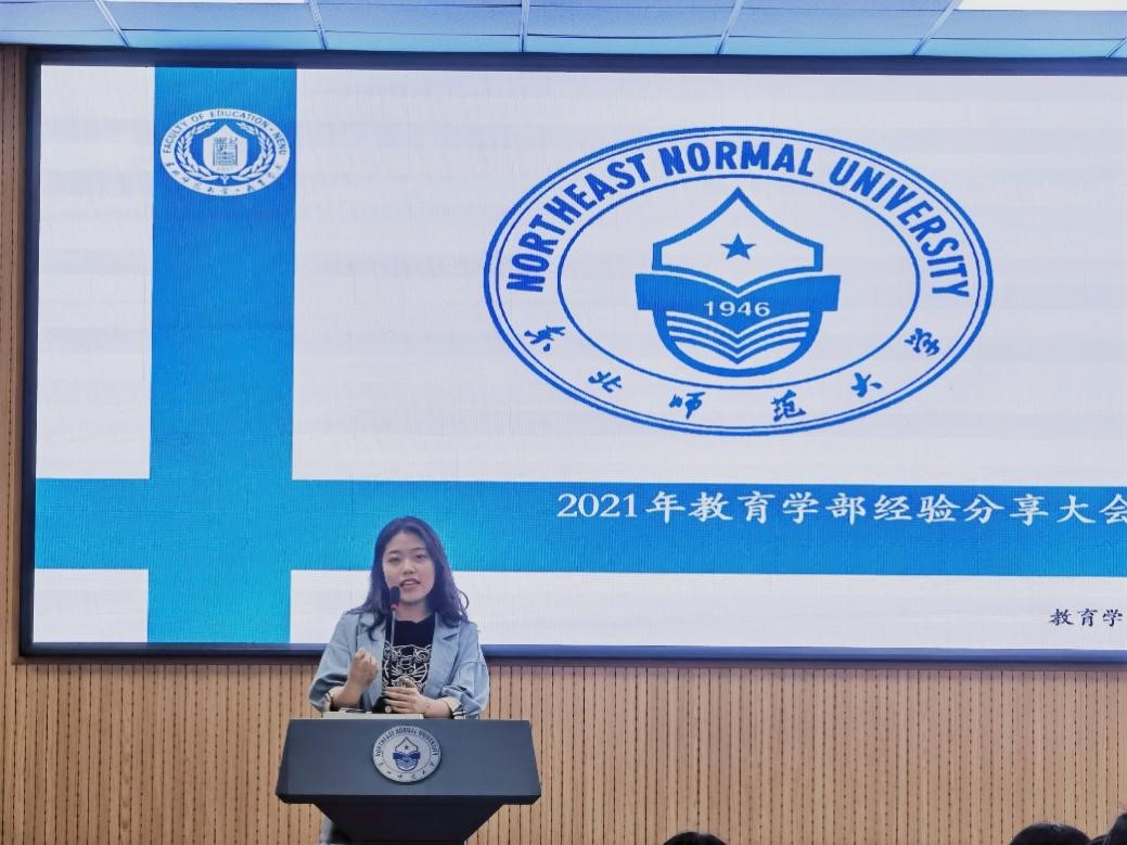 首先,2017级教育学专业林传舜(2021年东师“理想与成才”报告团成员,保送至复旦大学)从自身经历出发,讲述了如何参与各类社会实践、科研活动,如何组织参与学生活动,如何充分利用大学时间多读书学习,并分享了自己参与“in东师”小程序开发及其他创业活动的心得,鼓励学弟学妹要敢想敢拼,不负青春韶华。