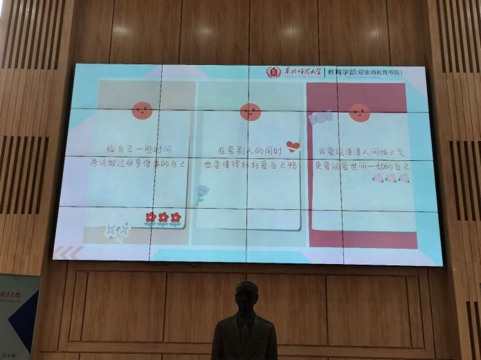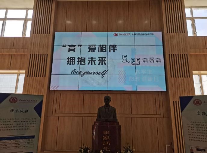 同时,学部一楼大厅电子屏幕循环播放5·25宣传海报,在学部内营造了积极关注心理健康的良好氛围。