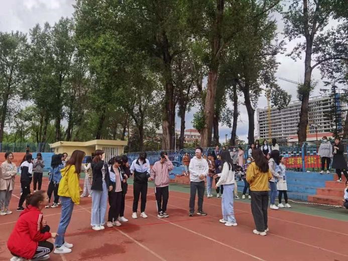 所有参赛学生随机分为七组,进行八个关卡的闯关解密。活动正式开始前,参赛选手们通过热身小游戏“默契大考验”增进感情,感受团队的力量。热身过后,各组选手通过竞赛小游戏“爱的传递”决定各自的出发顺序。正式活动中,各小组积极投入比赛,小组成员齐心协力地完成关卡任务,争分夺秒地奔向下一个关卡。所有小组完成全部关卡后返回田径场,本次活动顺利完成。