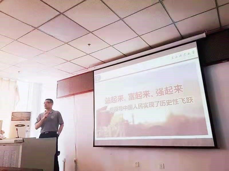 罗湘衡教授从史料出发,绘声绘色地讲述了新中国成立以来国家的建设与发展,以国际政治视角解读我国外交政策。通过讲述访问苏联、抗美援朝、新中国国际局势等史实,为我们展现了新中国从独立到“站起来”、“富起来”的曲折历史,在座的党员们都深切感受到先辈们不屈不挠、艰苦奋斗的革命精神。