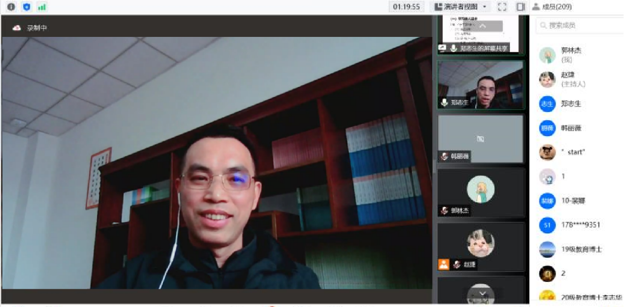 访谈交流环节,访谈人吕艳坤就“为了入职后能顺利开展教育研究,职前教师应该做哪些准备”与“新手教师开展教育研究应该注意哪些问题”和郑志生校长进行了深度交流。在郑志生校长看来,为了入职后能顺利开展教育研究,职前教师需要打好扎实的理论基础;其次,是要养成严谨的研究规范,比如能够撰写扎实、规范的文献综述;再次,是要学习积累科学的科研方法。关于新手教师开展教育研究应该注意哪些问题,郑志生校长认为,要扎根田野,了解教学一线的实际,在一线的课堂教学中磨练自身。研究要从实践中来,接地气,否则容易浮于表面。郑校长与线上同学就其他相关问题进行了深度的交流。