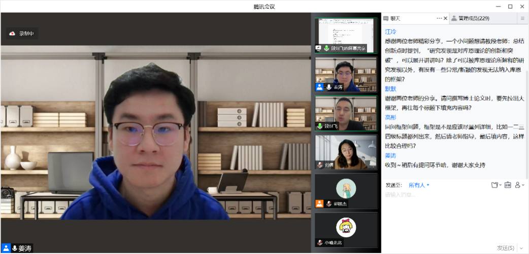 最后,唐丽芳教授对本次活动进行总结并发表感想,各位同学纷纷表示了对学部以及两位老师的感谢。活动全程学术氛围浓厚,各位同学既收获了一场分享盛会,也获得了一种满载而归的幸福感。至此,“志学有术”优博主题交流会第一期完满地落下帷幕。