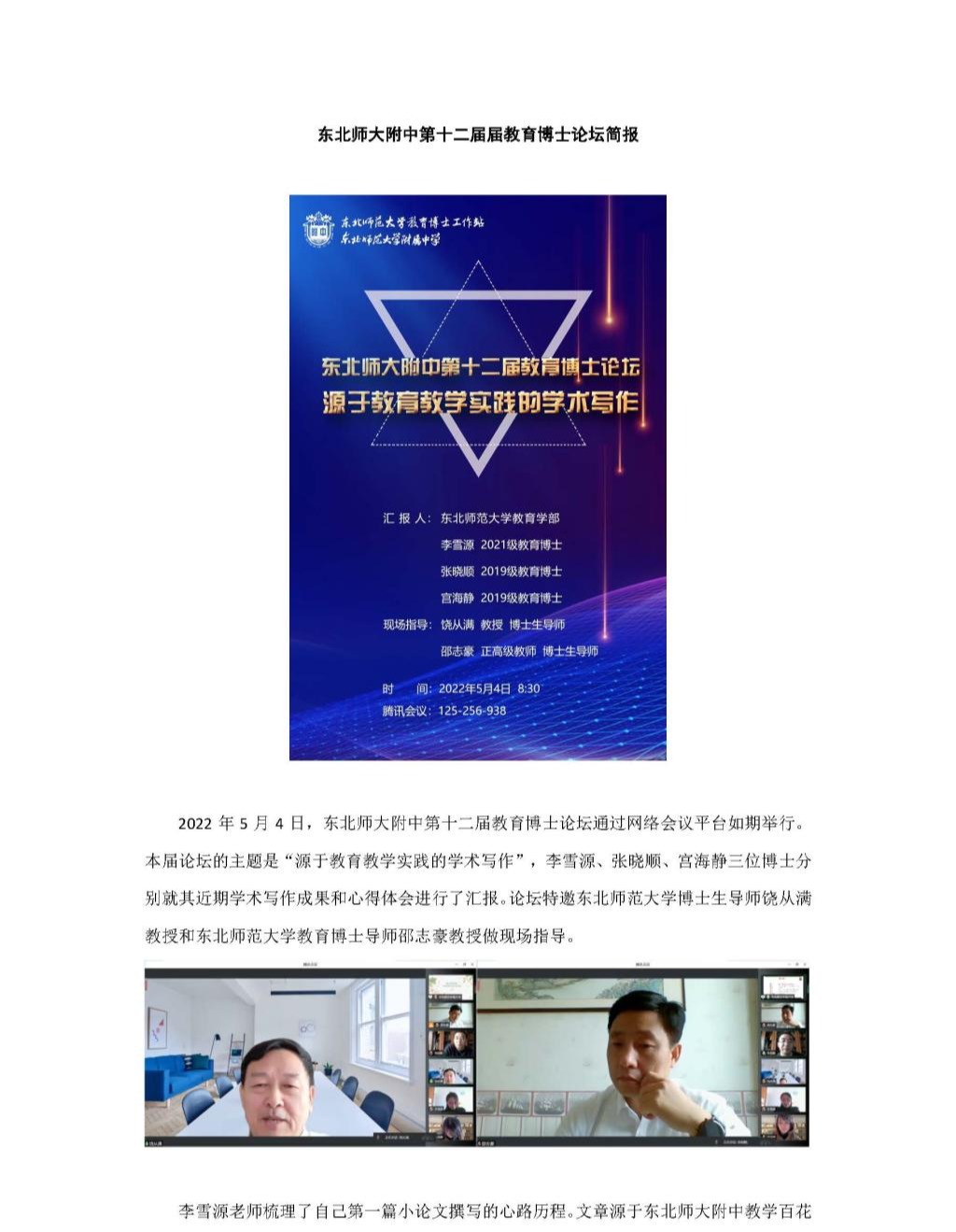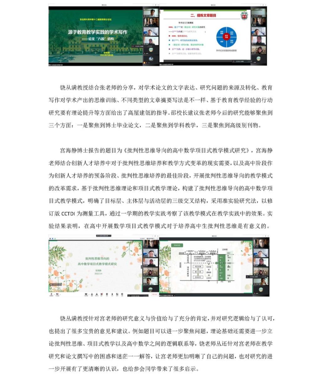 东北师大附中第十二届届教育博士论坛简报
