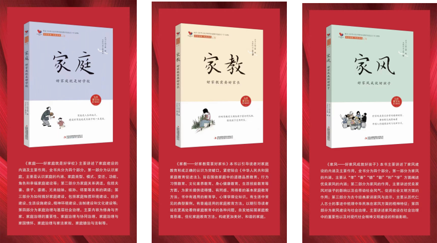 同时由学部赵刚老师主编的科学家教,优良家风系列丛书《家庭》《家教》《家风》线上出版发布,该丛书为吉林省社会科学基金重点项目研究成果,深度解读了习近平总书记关于家庭家教家风建设重要论述,宣传普及科学的家庭教育知识和方法,助力提高家庭教育能力水平。