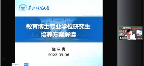 饶从满教授从“教育博士专业学位教育的国际发展”“教育博士专业学位研究生培养方案”“对教育博士专业学位研究生的建议”三方面,对培养方案进行了详细、全面的解读。