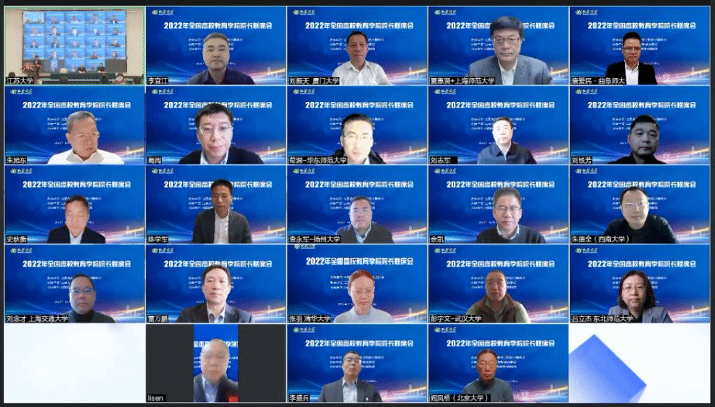 2022年全国高校教育学院院长联席会以“新时代教育评价改革与一流教育学科建设”为主题,由“全国高校教育学院院长联席会”主办,江苏大学教师教育学院承办,《高校教育管理》编辑部协办。会议以线上线下相结合的方式举办,来自全国90多家的高校教育学院170余位304永利集团部长、教育学院院长和专家学者参与了年会。