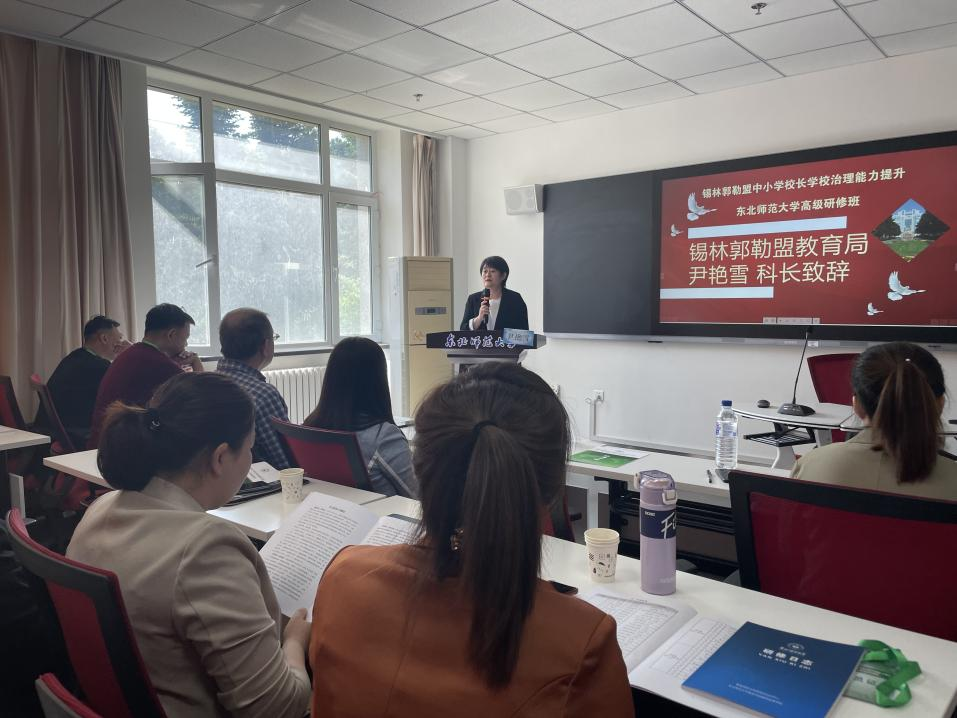 陈欣院长首先对来自锡林郭勒盟的43名中学校长表示了热烈的欢迎,然后对304永利集团及教师发展学院进行了介绍,并对学员研修提出期望。梁红梅副院长进行了培训方案解读,强调本次培训以校长学校治理能力提升为主题,注重理论与实践相结合,希望校长在研修过程中认真学习和反思,积极交流和对话。锡林郭勒盟教育局尹艳雪科长对本次参训校长提出了几点要求,希望学员能在本次培训中认真学习,为全盟的教育质量提升添砖加瓦。