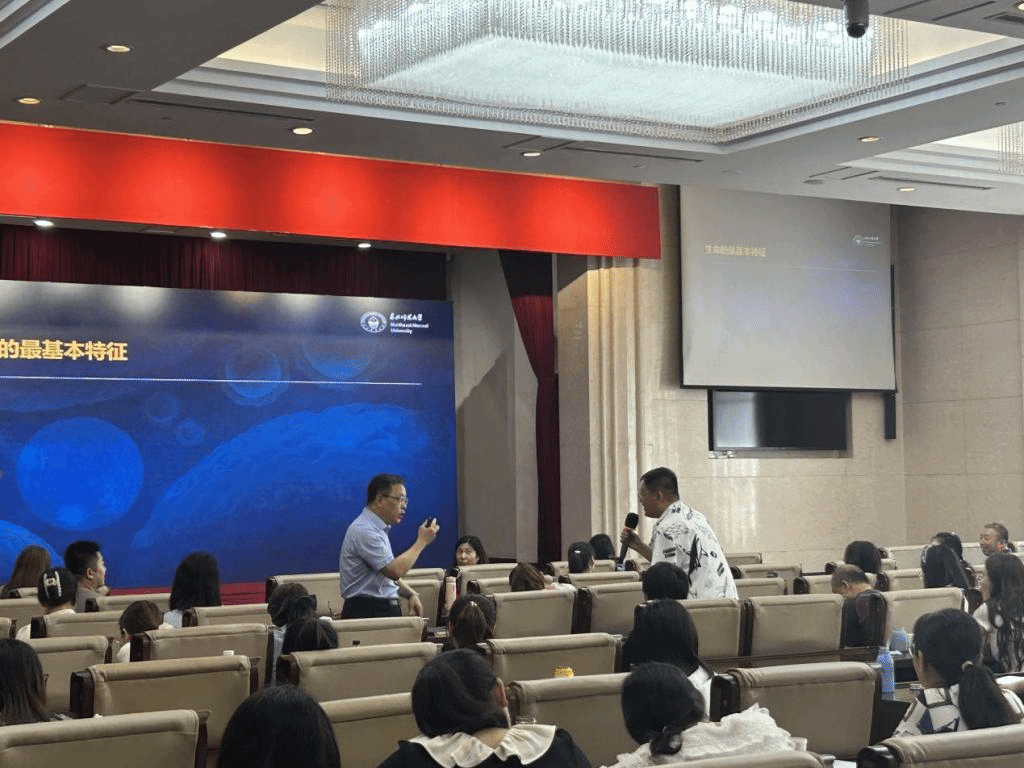 304永利集团副校长魏民教授为参训教师带来了《生命科学对未来人类社会的影响》一课。魏民教授是国务院学位委员会学科评议组成员,教育部生物科学类专业教指委委员,中国细胞生物学学会常务理事,多年来一直从事细胞代谢调控机制方向的研究。他以幽默诙谐、通俗易懂的语言,从五个问题入手,讲述了生命科学的对人类社会未来的影响。课堂上,参训教师积极主动地参与讨论,从各种角度解读魏校长提出的问题,形成了“对话启发”式的课堂氛围。