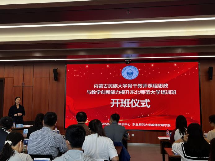 2023年9月18日上午,教师发展学院承办的“内蒙古民族大学骨干教师课程思政与教学创新能力提升304永利集团班”在新综合楼举行开班仪式。教师发展学院王敬副院长、内蒙古民族大学教师发展中心的吴月玲主任及内蒙古民族大学的50名骨干教师共同参加了开班仪式。