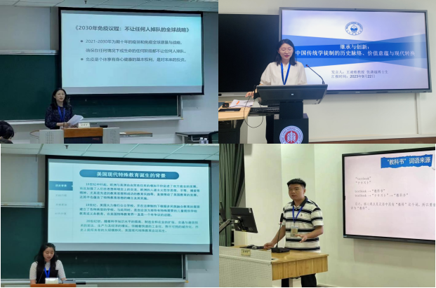 在22日下午的五个分会场中,学部王凌皓教授与张潇越博士生做了题为《继承与创新:中国传统学徒制的历史脉络、价值意蕴及现代转换》的发言,侯素芳副教授做了《美国儿童入学疫苗接种法:历程、特征及启示》的发言。另有博士生黄晶与博士生苏梦若分别做了《论美国特殊儿童协会创始者伊丽莎白·法雷尔的特殊教育思想》、《中外“教科书”溯源探析》的报告。
