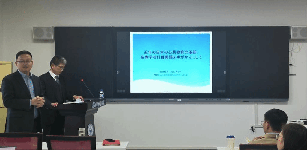 讲座伊始,饶从满教授对桑原敏典教授的任职和研究方向进行了介绍,并简要说明了在中日两国教育话语中道德教育、德育、思想政治教育和公民教育等之间的差异和联系,希望大家能通过本次讲座增进了解,有所收获。在大家的热烈掌声中,讲座拉开序幕。