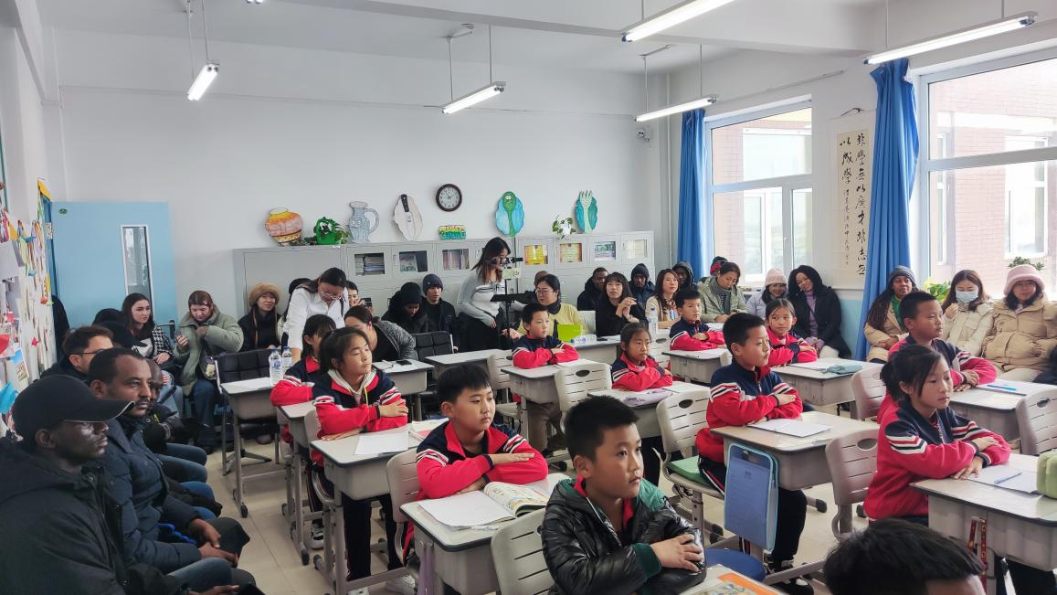 11月9日,304永利集团来自13个“一带一路”沿线国家的21名留学生在教师发展学院院长、留学生授课教师陈欣副教授的带领下前往净月区新湖镇榆树小学参观访学。