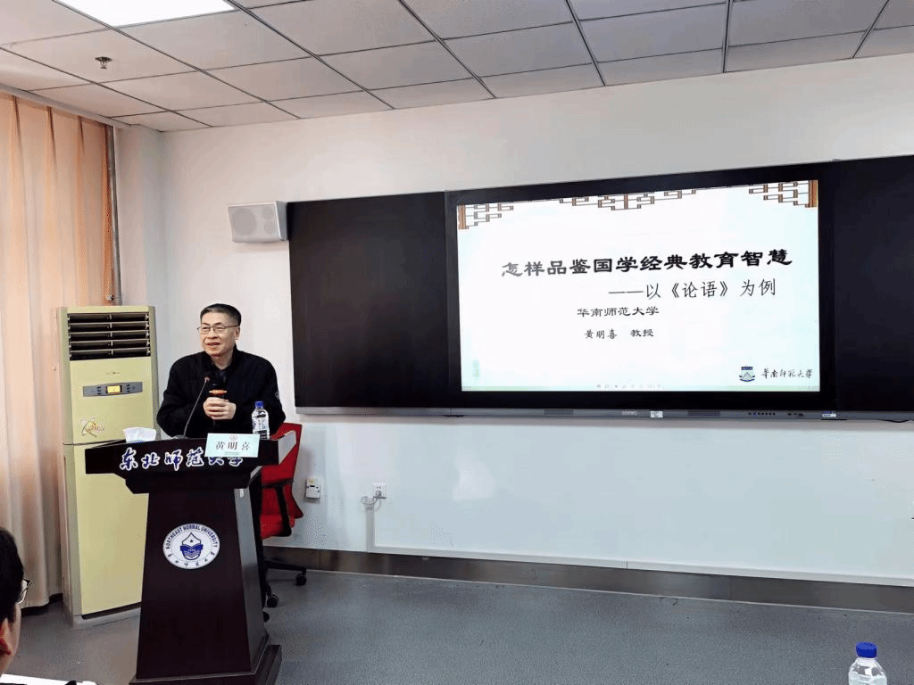 首先,黄明喜教授以早年亲自拍摄的MOOC视频《<论语>教育智慧品绎》进行导入,对《论语》等中国传统教育经典的重要性进行了阐释,并提出,中华优秀传统文化博大精深,值得我们进一步挖掘与探索。其次,黄明喜教授将学习《论语》的必要性娓娓道来,他指出,《论语》引领了中华民族对本源文化的认同和支持,彰显“轴心时代”的中华文明风貌。再次,他强调了《论语》中蕴含的教育智慧,提出,应在培养人才的过程中,做到求真、求善、求美。最后,他重点讲述应该如何品评《论语》中的教育智慧,提出“耳濡目染”“融会贯通”“返本开新”三大策略,详细地从是什么、为什么、怎么做三个维度探析了《论语》中的教育智慧。史料翔实,内容丰富,观点新颖,引人入胜。