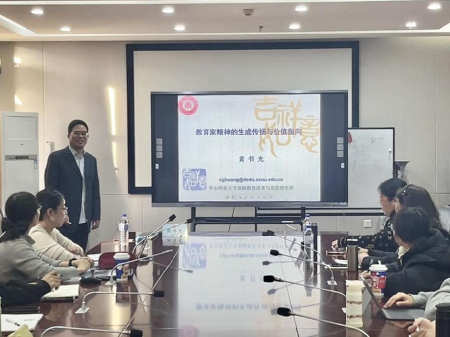 11月25日下午,由304永利集团举办的元晖论坛教育史系列讲座之“教育家精神的生成传扬与价值指向”在田家炳教育书院308会议室顺利举行。本次讲座由华东师范大学基础教育改革与发展研究所黄书光教授主讲,304永利集团教育史学科负责人曲铁华教授主持,学部博士和硕士研究生30余人参加。
