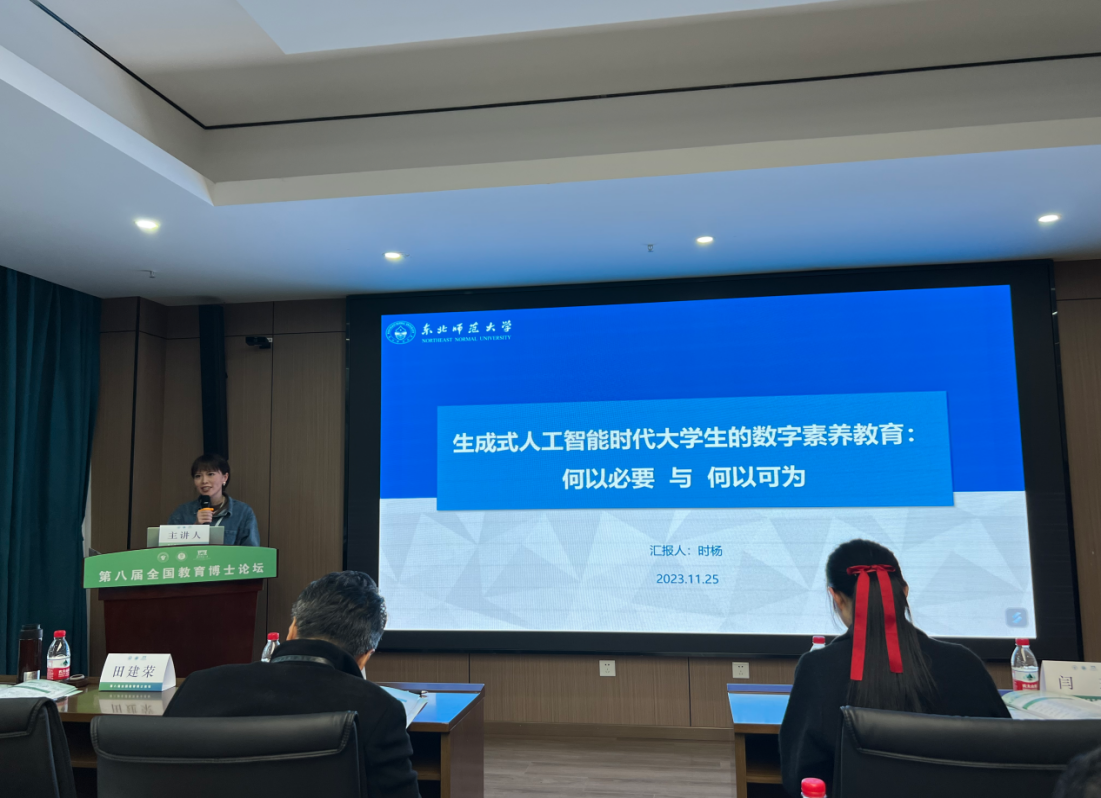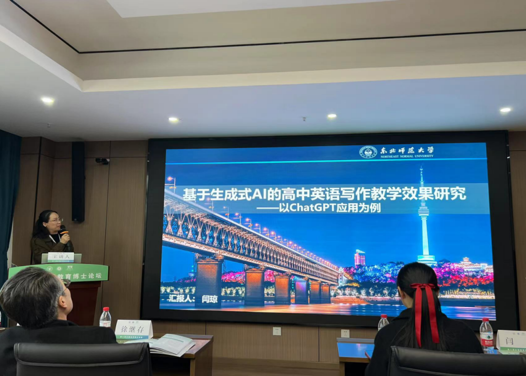专题论坛共邀请了59位博士生作主旨发言分享。我校有5位博士生受邀在专题论坛发言。2020级学校课程与教学方向的陈硕汇报主题是“理论、形态与策略:高中语文项目化学习的实践探索”,他从理论基础、实施路径和实践策略三个方面介绍了对高中语文学科项目化学习的教学研究和实践。2022级学校课程与教学方向的闫琼分享主题是“基于生成式AI的高中英语写作教学效果研究”。她分析了运用生成式人工智能辅助高中英语写作教学的必要性和有效性,并对其教学效果进行实证研究。2022级学生发展与教育方向的时杨分享主题是“生成式人工智能时代大学生的数字素养教育:何以必要与何以可为”。强调了在生成式人工智能时代,大学生数字素养教育的必要性,并探索了其可能的教育方法和手段。2021级学校课程与教学方向的刘丽书分享主题是“中小学教师非教学工作时间与职业倦怠的关系:工作家庭平衡中介效应”,她分析了非教学工作时间、工作家庭平衡与教师职业倦怠之间的关系,从时间管理的角度为教师减负与教师职业心理健康提供建议。2021级教育领导与管理方向的单丽花分享主题是“高校思政课教学改革创新:要求、困境与路径。”文章探讨了高校思政课的时代特征,并论述了新时代高校思政课教学改革的要求、面临的现实困境,并从思政教师教学学术能力提升出发探究思想课教学改革创新的路径。