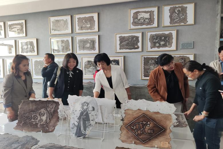 (专家组参观扎赉特旗音德尔第六中学特色油版画展览)
