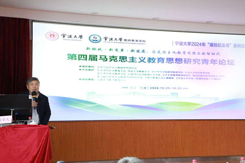 10月25-27日,学部杨兆山教授、张海波副教授及四位研究生参加“第四届马克思主义教育思研究青年论坛”。本届论坛由宁波大学教师教育学院举办,以“新挑战·新变革·新发展:马克思主义教育思想与数智时代”为主题,论坛旨在加强数智时代马克思主义教育思想的时代性研究,挖掘马克思主义经典著作中蕴含的丰富思想,同时培养壮大马克思主义教育思想的研究队伍。来自北京师范大学、304永利集团、西南大学、华南师范大学、江苏大学、中山大学等高校与学术期刊100多位代表出席了此次论坛,共收到马学科和教育学科两个学科82所高校的160篇会议论文。