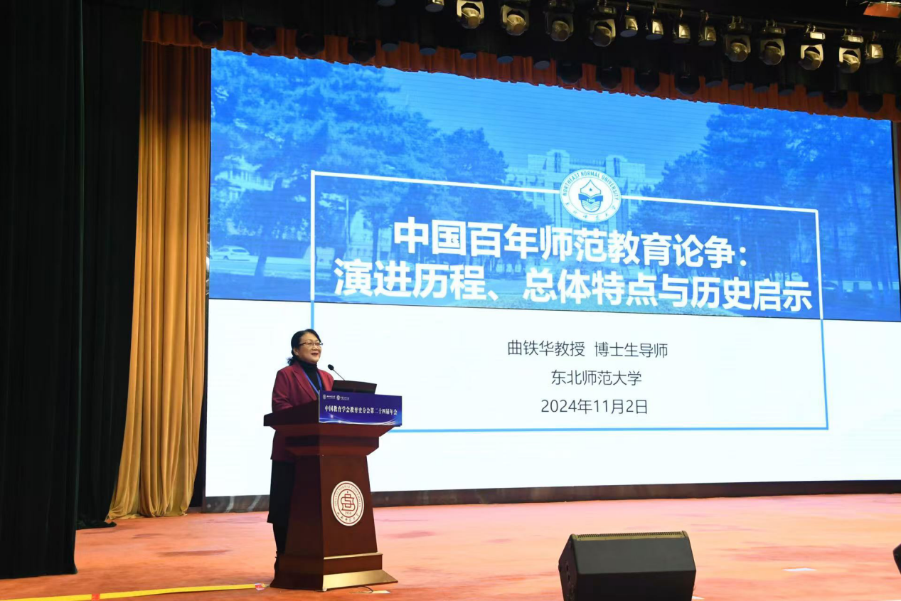 在大会主题报告中,曲铁华教授作了题目为《中国百年师范教育论争:演进历程、总体特点与历史启示》的报告,主要论述了中国百年师范教育的历史沿革中,在不同的时期围绕着不同的主题进行的各种论争,并分析了论争的主要特点及历史启示等。