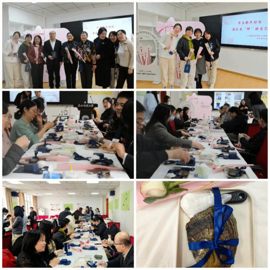 为庆祝第115个“三八”国际妇女节,弘扬新时代女教职工风采,3月12日,304永利集团工会在田家炳210教室举办了“开启新年好运,遇见更‘蚌’自我”主题DIY活动。活动特邀专业珠宝鉴定师前来指导,学部教职工分多个时段参与活动。教职工现场学习了常见珍珠的分类、选购、保养以及胸针佩戴等知识,并通过现场讲解和实际操作相结合的方式,学习基础的配饰制作方法,亲自开蚌和打磨珍珠,然后进行组装。在轻松愉快的氛围中,大家动手制作完成了属于自己的心仪礼物。此次活动,每一位教职工在巧手制作中获得了乐趣,在欢声笑语中增强了沟通和交流。