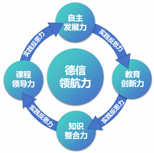 六力模型图描述 中心核心:德信领航力,位于模型中心位置,是整个模型的核心与灵魂,为其他五个维度提供价值引领和精神动力。 基础支撑:知识整合力,是教师专业发展的基石,为课程领导力和教育创新力提供理论支持和知识储备。 关键实践:课程领导力,是教师在教育教学中发挥主导作用的关键能力,贯穿于教学实践的各个环节,直接影响教育质量和学生发展。 引领创新:教育创新力,是教师推动教育变革与发展的核心能力,体现教师在新时代教育中的探索精神和创新能力,推动整个教育体系的变革与发展。 持续动力:实践反思力,是教师专业成长的重要动力源泉,促使教师不断总结经验、改进教学,反作用于知识整合力和课程领导力的提升。 内在驱动:自主发展力,是教师可持续发展的内在驱动力,推动教师主动追求专业成长,实现自我价值和职业进阶。 |