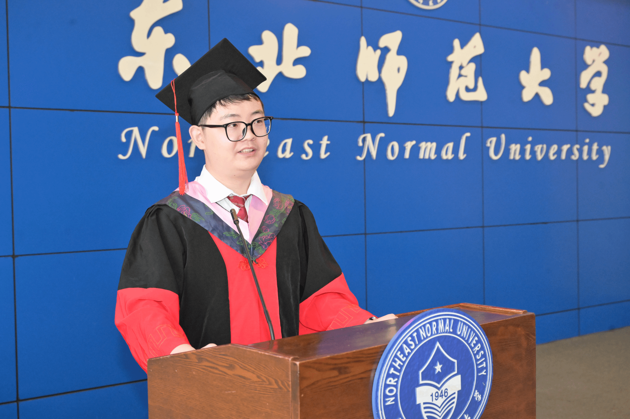 研究生代表、2021级教育学原理专业博士毕业生白钧溢发言。他分享三点感悟:其一,博士入学非起点,而是过往积累的回响与召唤。其二,读博是“自否定”过程,能力源于一次次“推倒与重建”的阵痛,一次次的直面质疑与忍痛删改淬炼出更严谨谦卑坚韧的学术自我。其三,毕业非终点,步入社会更需成为温和而坚定的“行动者”——以善意面对研究对象“人”,以专业信念坚定介入世界,践行教育学人“改变世界”的使命。最后,他呼吁毕业生带着学部赋予的知识与风骨,持续行动、建设,成为理想的教育研究者。