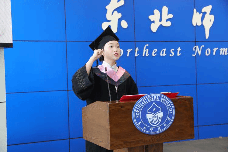 2021级小学教育专业毕业生罗梦媛代表全体毕业生宣誓,全体毕业生庄严承诺:“真心执教,爱心待生,诚心对民,忠心为国!”铿锵誓言呼应“率性之谓道,修道之谓教”的学部精神。