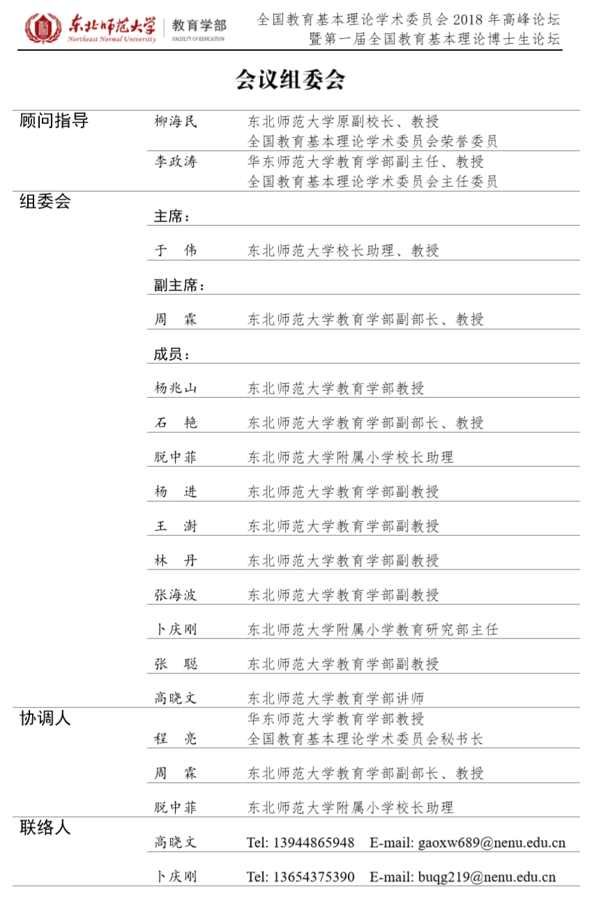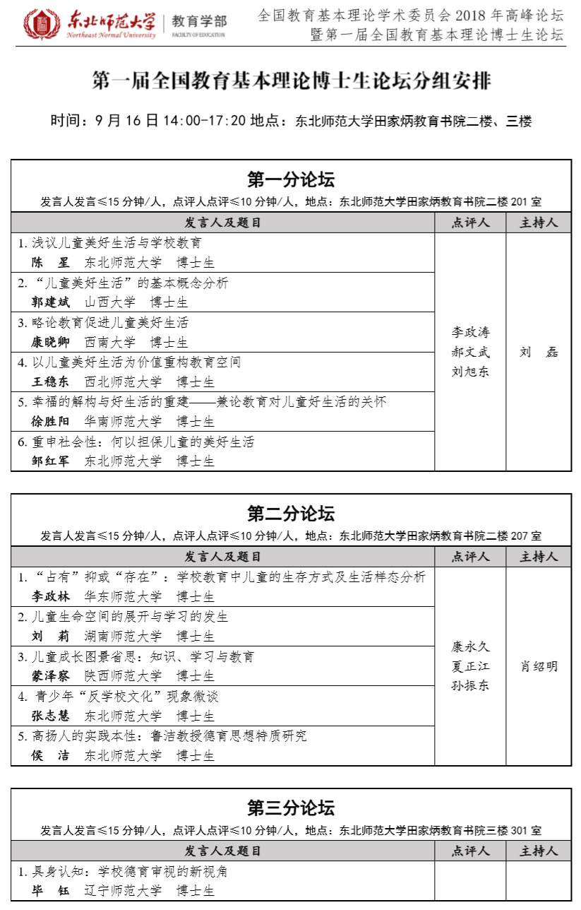 会议日程 | 全国教育基本理论学术委员会2018年高峰论坛暨第一届全国教育基本理论博士生论坛