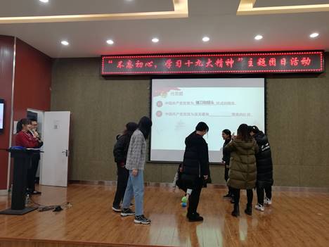 本次团日活动以知识竞答赛为主要形式,内容涵盖十九大报告中关于从严治党、民主法治、思想文化、生态文明、教育改革等多个维度。竞答赛分为必答和抢答环节,各小组凭借丰富的知识积累与良好的团队协作展开激烈的角逐,最终每个小组都获得了《习近平的七年知青岁月》《习近平讲故事》等图书。