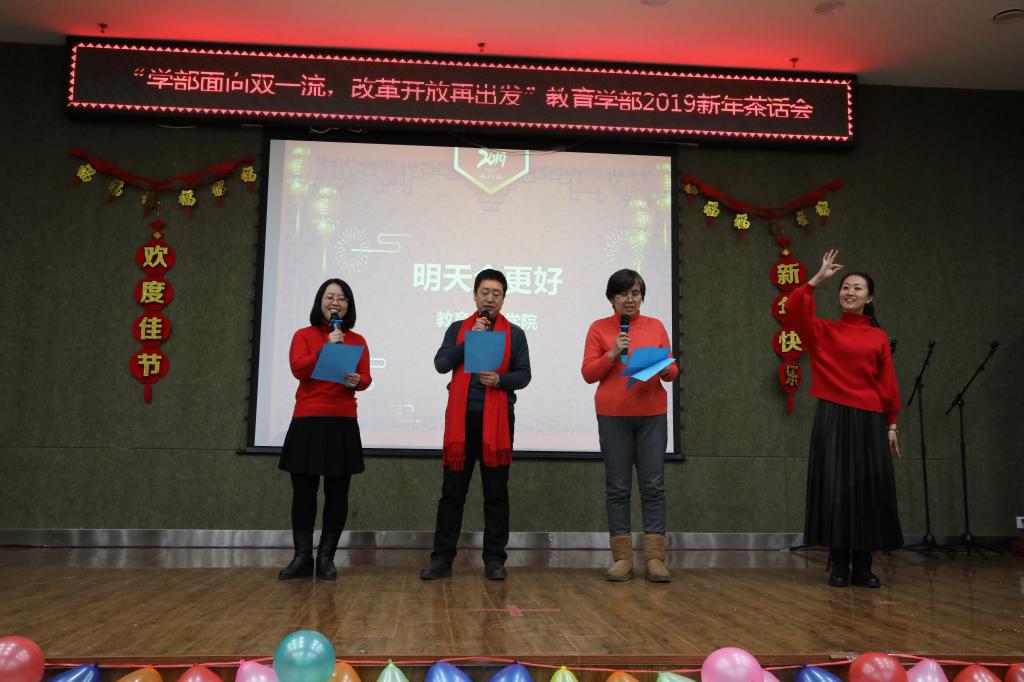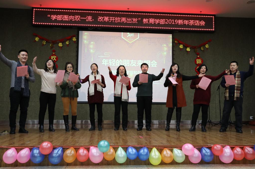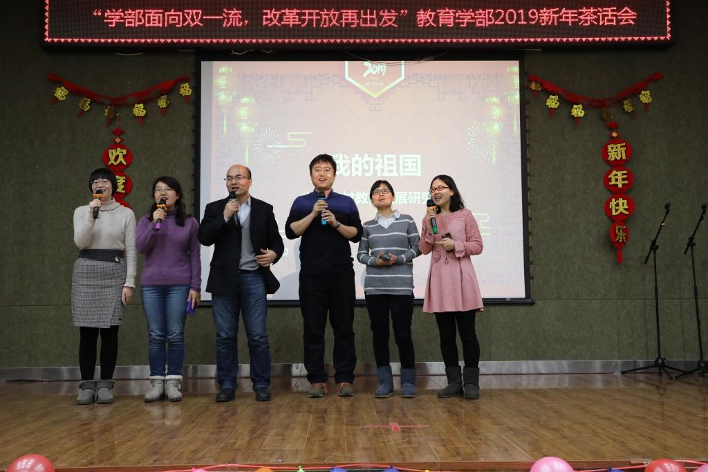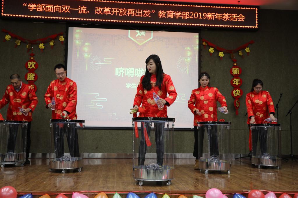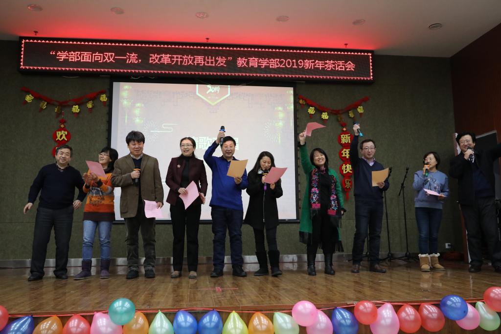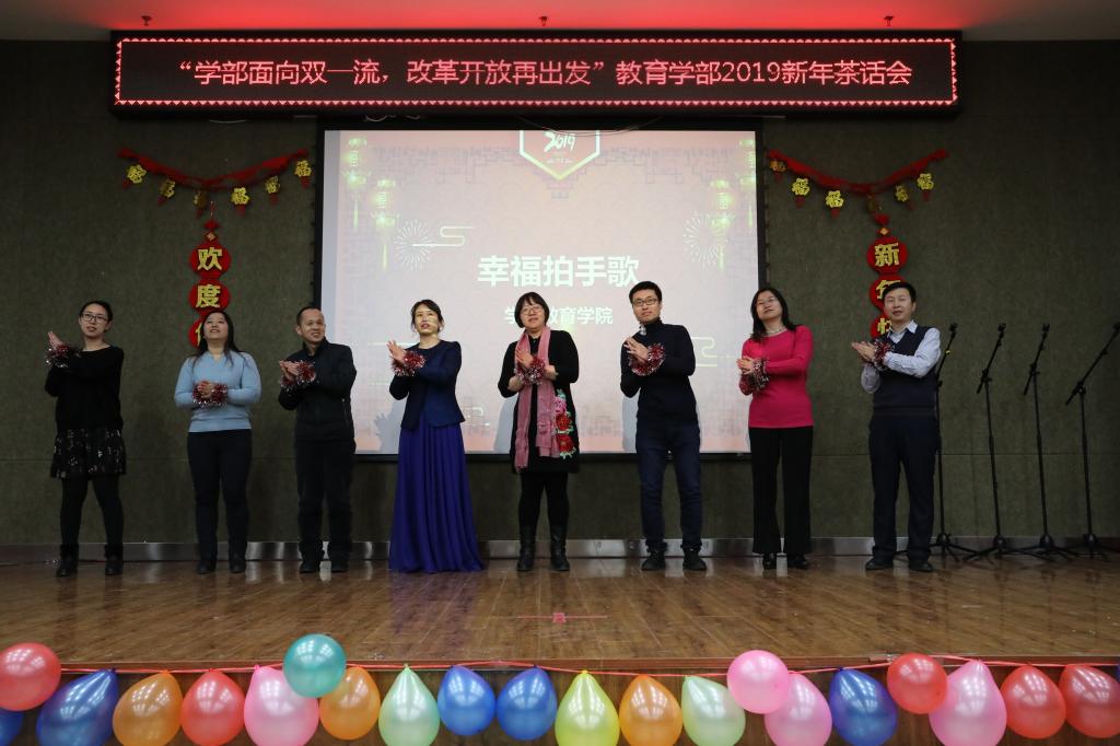 本次茶话会的主题为“学部面向双一流,改革开放再出发”。会上,学部领导与全体教师共同回顾了2018年学部在学科建设、人才培养、科学研究、社会服务等多个方面所取得的新成绩,尤其是在“一流学科”建设过程中获得的新突破。学部教师以院所、中心为单位,精心准备了多个讴歌改革开放、赞美新时代的精彩节目,奉献了一台喜庆热烈、格调高雅的新年茶话会。