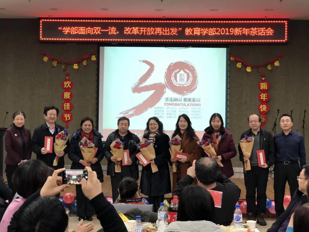 12月28日中午,学部2019年新年茶话会暨从教三十年以上教师颁奖典礼在校北苑餐厅举行。