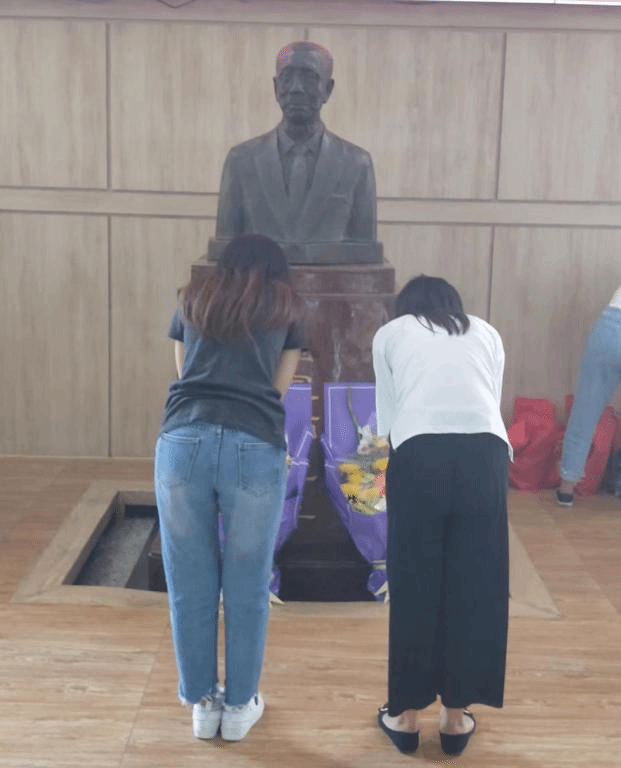 活动开始,首先由王利同志介绍了田家炳先生的生平事迹,然后全体党员共同观看田家炳先生视频短片,大家深刻地了解了他平凡而伟大的人生——“没有自己的私家车,乘坐地铁或走路上下班;没有高档的生活享受,一双鞋穿了十年,袜子补了又补,相当长一段时间内,每月生活开支仅3000元;但却把自己总资产的80%都用于慈善事业的,先后捐赠大中小学近300余所”,先生的大爱深深地感动了所有人,特别是先生常说的那句“中国的希望在教育”,更加激发起大家的思想共鸣和强师报国的精神动力。随后,全体党员来到田家炳教育书院一楼大厅的先生雕塑前,党员代表武佳俊发表了演讲,号召身为党员的青年教育人要学习田家炳先生的仁德仁风和教育情怀,秉承先生遗志,努力做新时代“四有”好老师,用我们的聪明才智建设“教育强国”。最后,党支部书记郭明昊同志和全体党员一同向田家炳先生的雕塑敬献了鲜花。