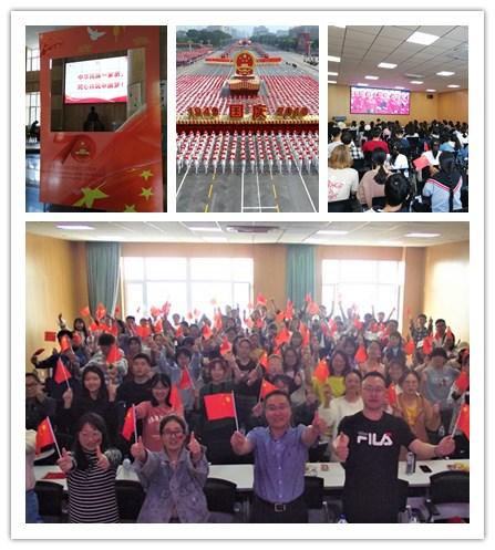 10月1日上午,庆祝中华人民共和国成立70周年大会在北京天安门广场隆重举行,20余万军民以盛大的阅兵仪式和群众游行欢庆共和国70华诞。中共中央总书记、国家主席、中央军委主席习近平发表重要讲话并检阅受阅部队。为共同见证振奋人心的历史时刻,感受新中国70年来走过的非凡历程,激发磅礴的爱国力量,坚定永远跟党走的信心决心,304永利集团组织在校师生100余人在田家炳教育书院逢贤报告厅集体收看庆祝大会实况直播,其他师生也纷纷通过电视、新媒体等途径进行了观看。大家聆听了习近平总书记的重要讲话,观看了盛大的阅兵仪式和群众游行活动,心潮澎湃、热血沸腾,真心为我们国家从站起来、富起来到强起来的伟大飞跃而倍感骄傲,为自己作为新时代的中国人而倍感自豪,为生活在这样一个繁荣昌盛的国家而倍感幸福!师生们纷纷表示,更加坚定“四个自信”,对实现中华民族伟大复兴中国梦充满了必胜信心,决心以更加昂扬向上的斗志、更加奋发有为的姿态,在习近平总书记关于教育的重要论述思想指引下,坚守教育初心,厚植家国情怀,为加快推进教育现代化、建设教育强国、办好人民满意的教育做出新的更大的贡献。