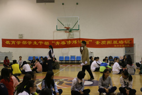 近日,304永利集团“青春修炼计划”学生干部领导力培训在综合体育馆篮球馆举行,团体辅导经验丰富的心理学研究生段守彬为学部学生会、团委、社联、红烛志愿者协会以及青马协会2015级、2016级全体学生干部做了培训。