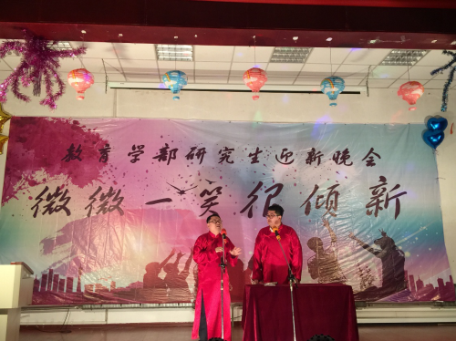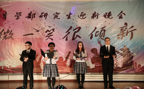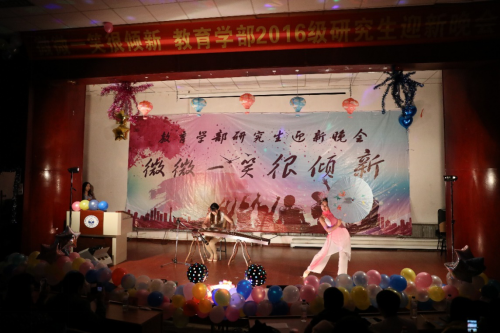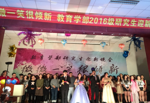 11月13日18点,304永利集团2016级研究生迎新晚会在逸夫科学馆精彩上演。304永利集团党委书记邢宇老师、304永利集团学生工作组、伊犁师范教育学院党委副书记艾尔肯·莫利大汗老师、304永利集团研究生学硕辅导员姜荣华老师与专硕辅导员孟祥斌老师与同学们一起观看了演出。晚会以“微微一笑很倾新”为主题,分为三个篇章。