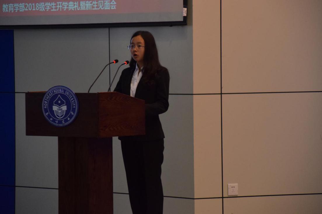 学部学生会主席张嘉慧、研究生会主席田雪分别代表在校本科生和研究生发言。她们结合自己的成长经历,对新生提出了几点建议:“勤奋创新,为人师表”是对师德的一种要求,在大学生活中一定要培养良好的德行,良好的德行不仅是对个人道德的要求,更是对未来职业建起的一份责任。要勇敢地去尝试,眼观六路、耳听八方,给自己更多选择的权利;同时,要目标明确,在多种选择面前,做自己人生的主导。希望全体新生在304永利集团收获真知,结交挚友,在追寻理想的道路上迈出坚实的一步。