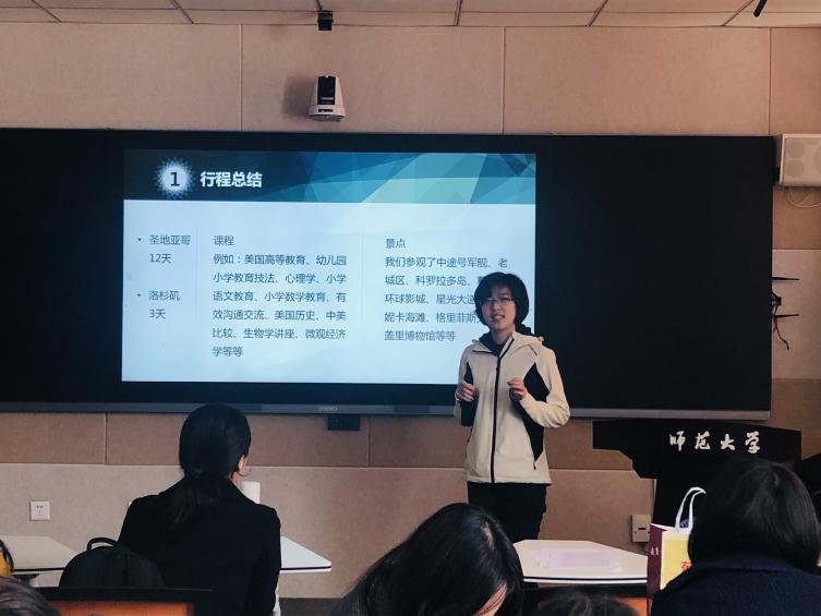 会上,2016级本科生赵悦、2017级本科生艾姝含、2017级硕士研究生李乐基于自身在UCSD的访学交流经历,先后分享了自己的交流体验和学习收获。她们从计划准备到出行安排,从学习生活到衣食住行,从美国的文化特色到人文景观等方面为与会同学做出了详细的介绍,并回答了同学们提出的问题。