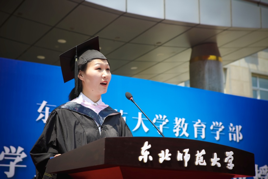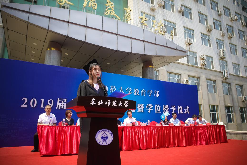 2019届本科毕业生代表、教育学专业李云同学以及2019届研究生毕业生代表、教育学原理专业肖桐同学分别代表全体毕业学生发言。李云、肖桐均表示,大学期间有过欢笑喜悦,也有过忧伤迷茫。但是在老师和同学们的帮助下,我们能够在困境中坚持自己的信念,认真完成学业,对自己的人生负责,相信未来的我们一定会有更加光明的前景。